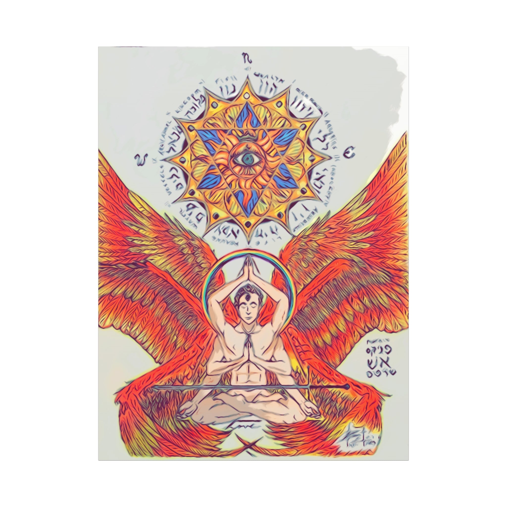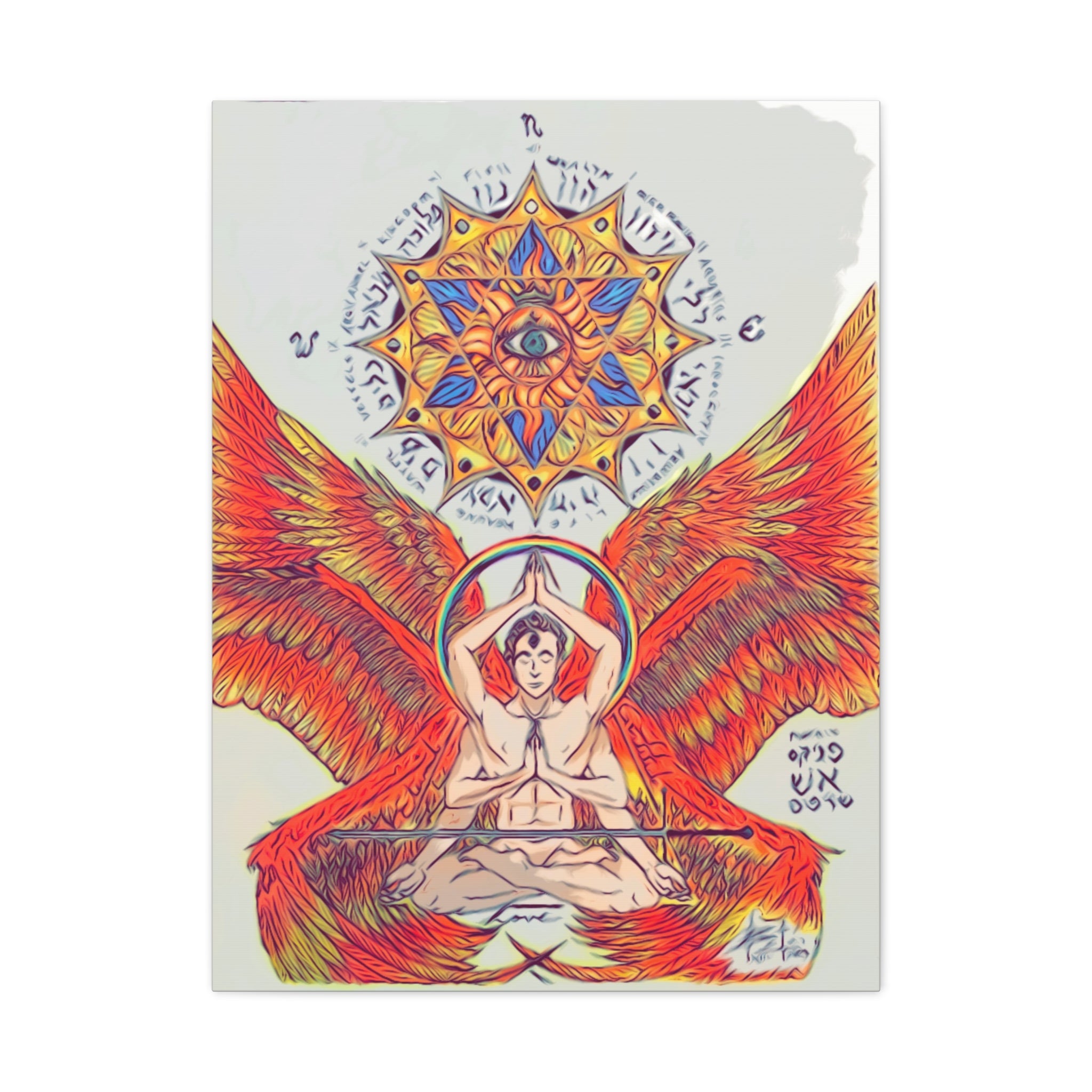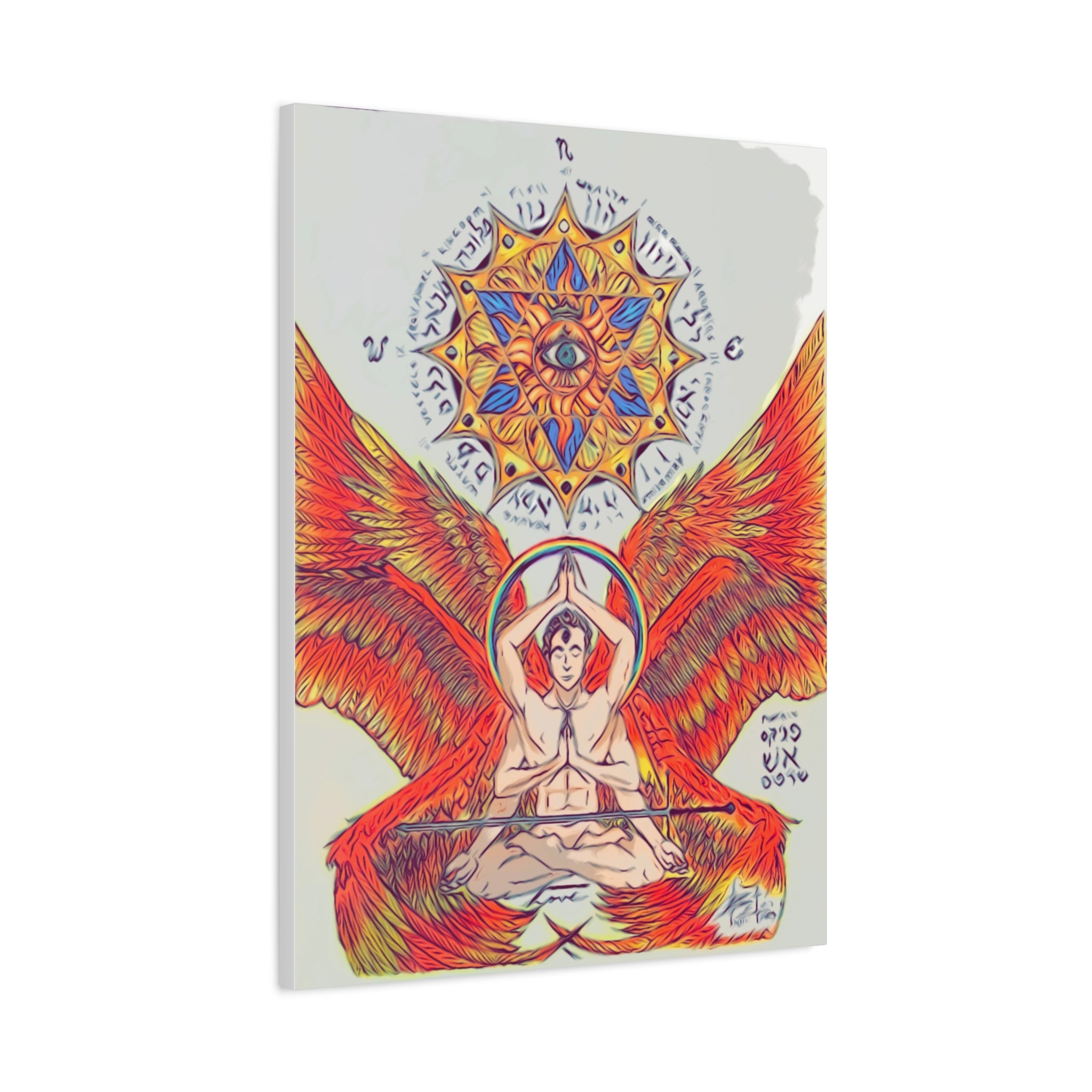 Fire Angel XIII canvas print exudes a mystical and ethereal vibe, perfect for adding a touch of magic to any space. Ideal for those who appreciate unique and artistic decor. Relevant for religious celebrations, spiritual occasions, and fantasy enthusiasts.