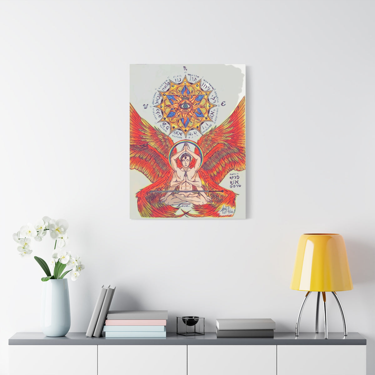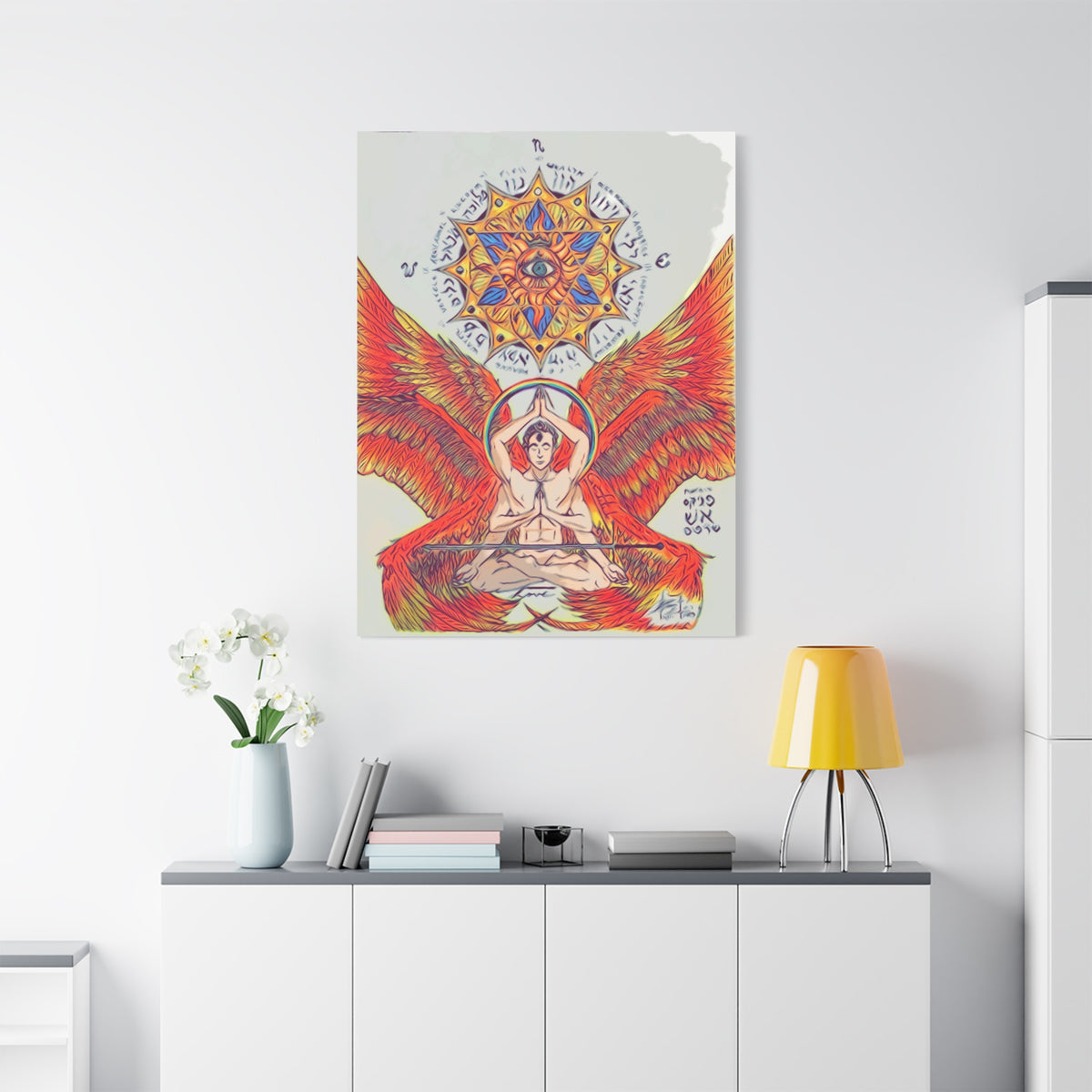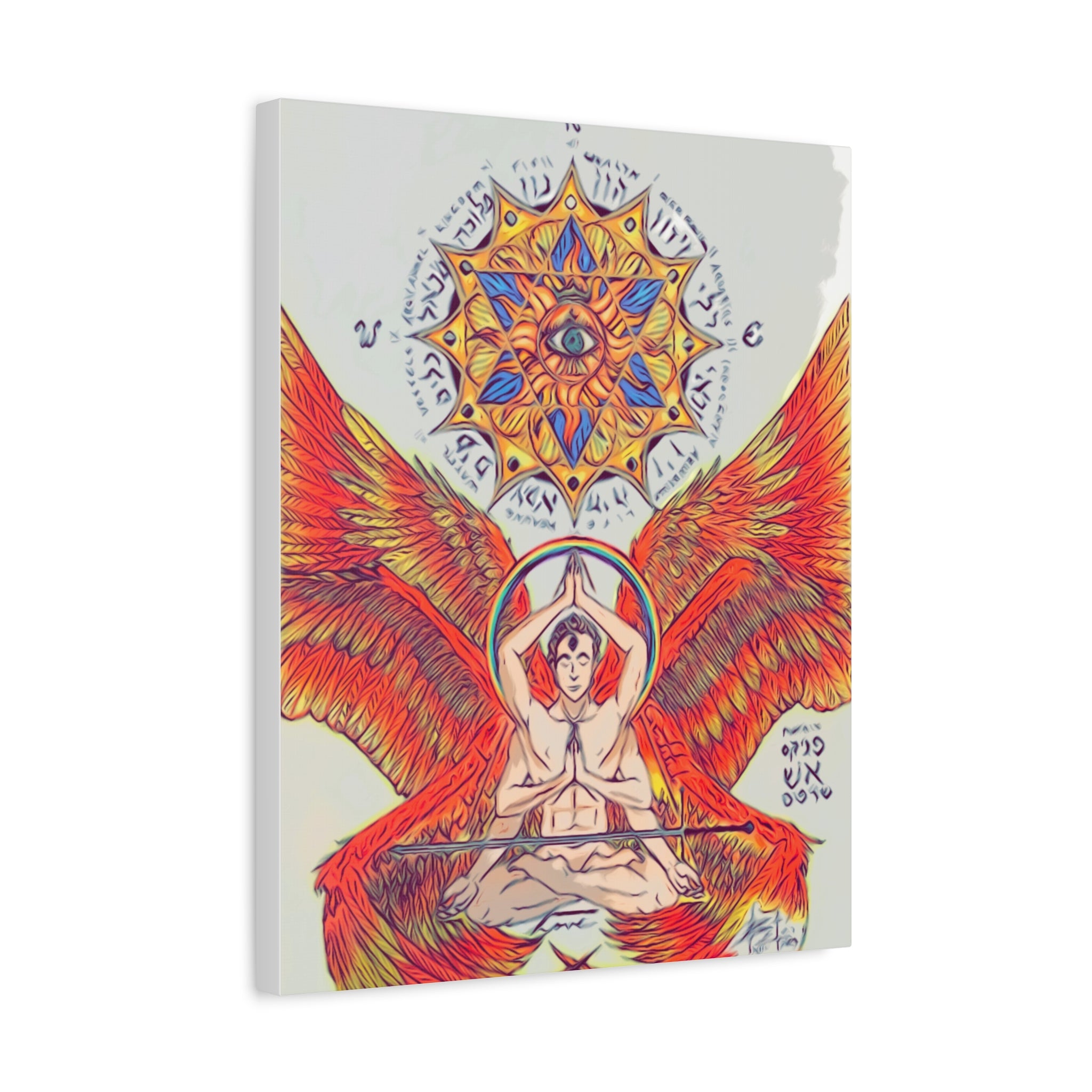 Fire Angel XIII canvas print exudes a mystical and ethereal vibe, perfect for adding a touch of magic to any space. Ideal for those who appreciate unique and artistic decor. Relevant for religious celebrations, spiritual occasions, and fantasy enthusiasts.
