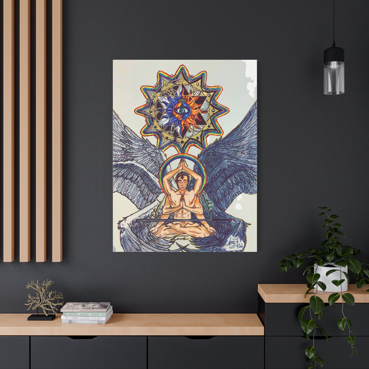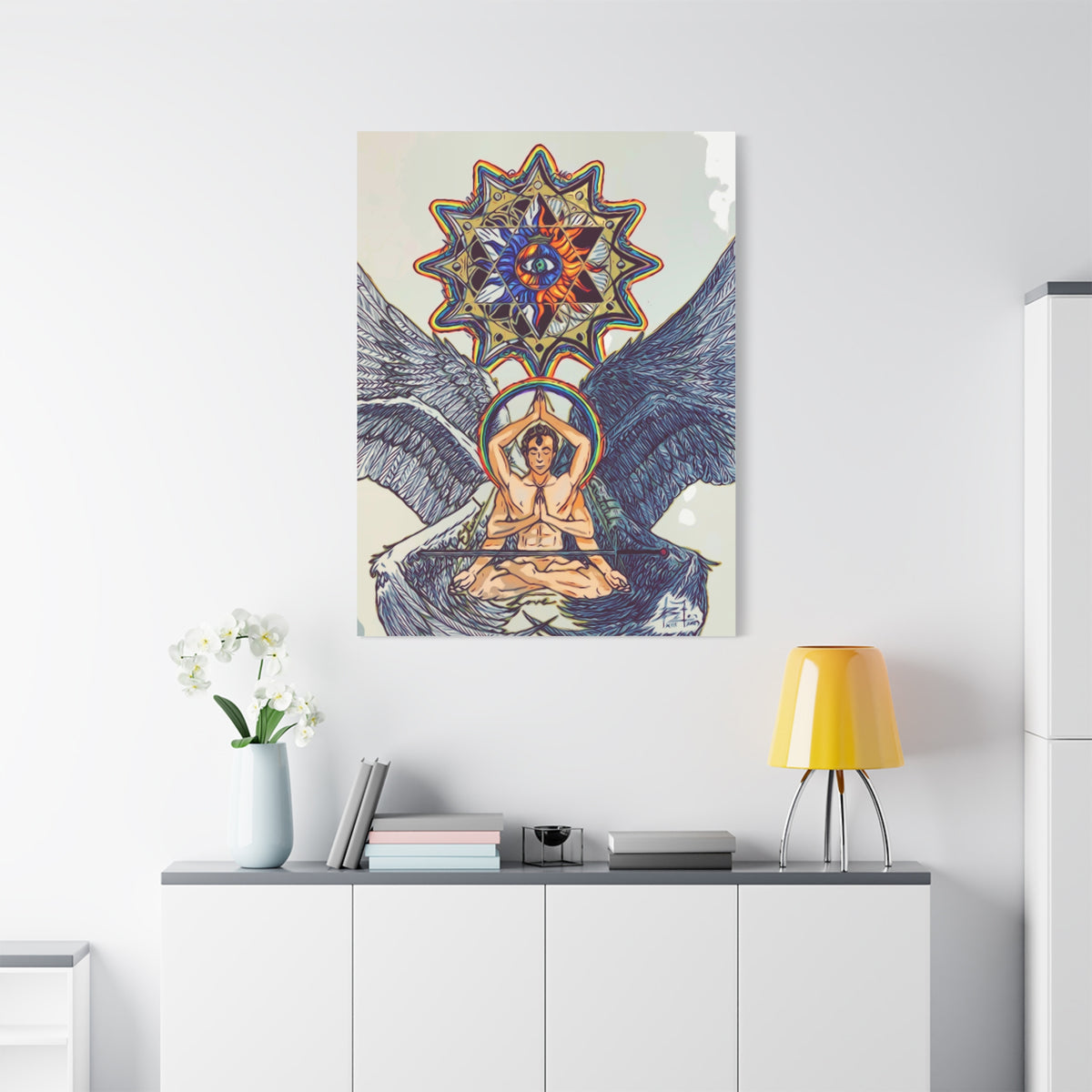 This unique canvas print of Meditating Angel Ark Gates Of Aquarius XIII gives off a peaceful and spiritual vibe, perfect for those looking to add a calming touch to their home decor. Ideal for spiritual individuals, this canvas is relevant for gifting on religious holidays or as a thoughtful housewarming present.