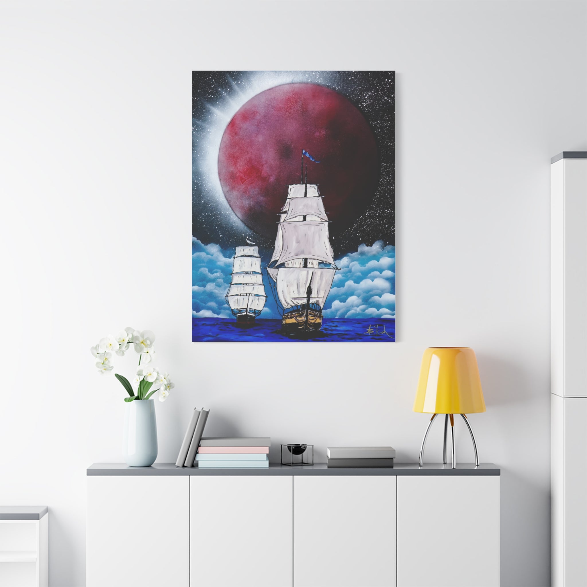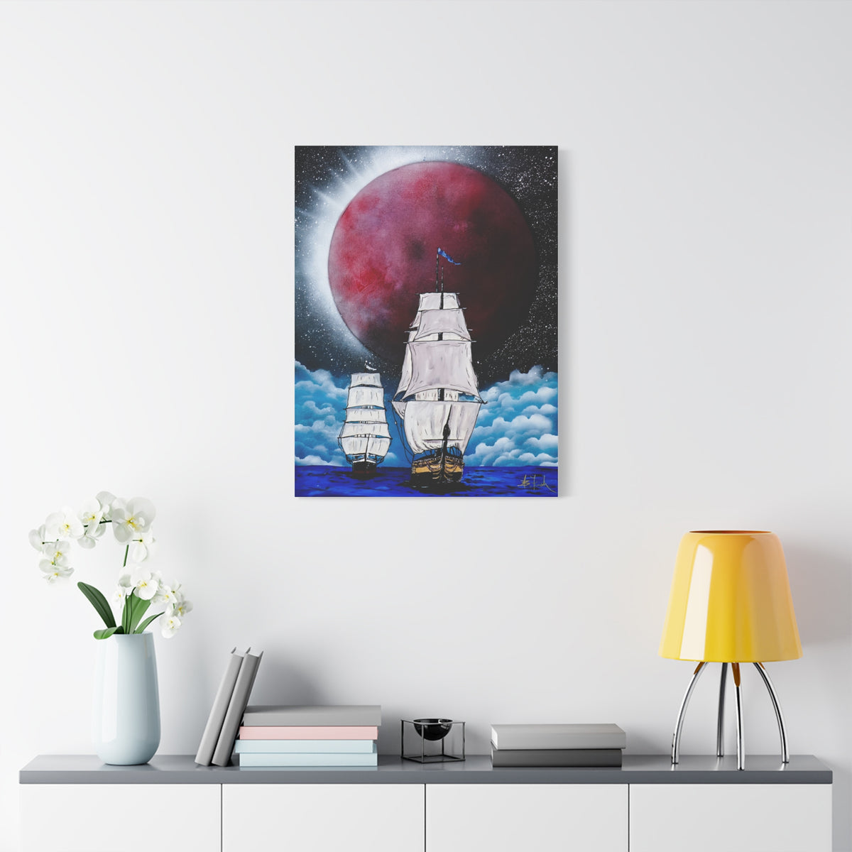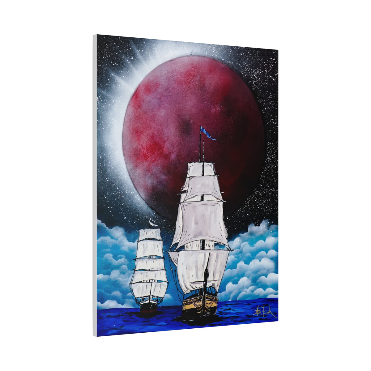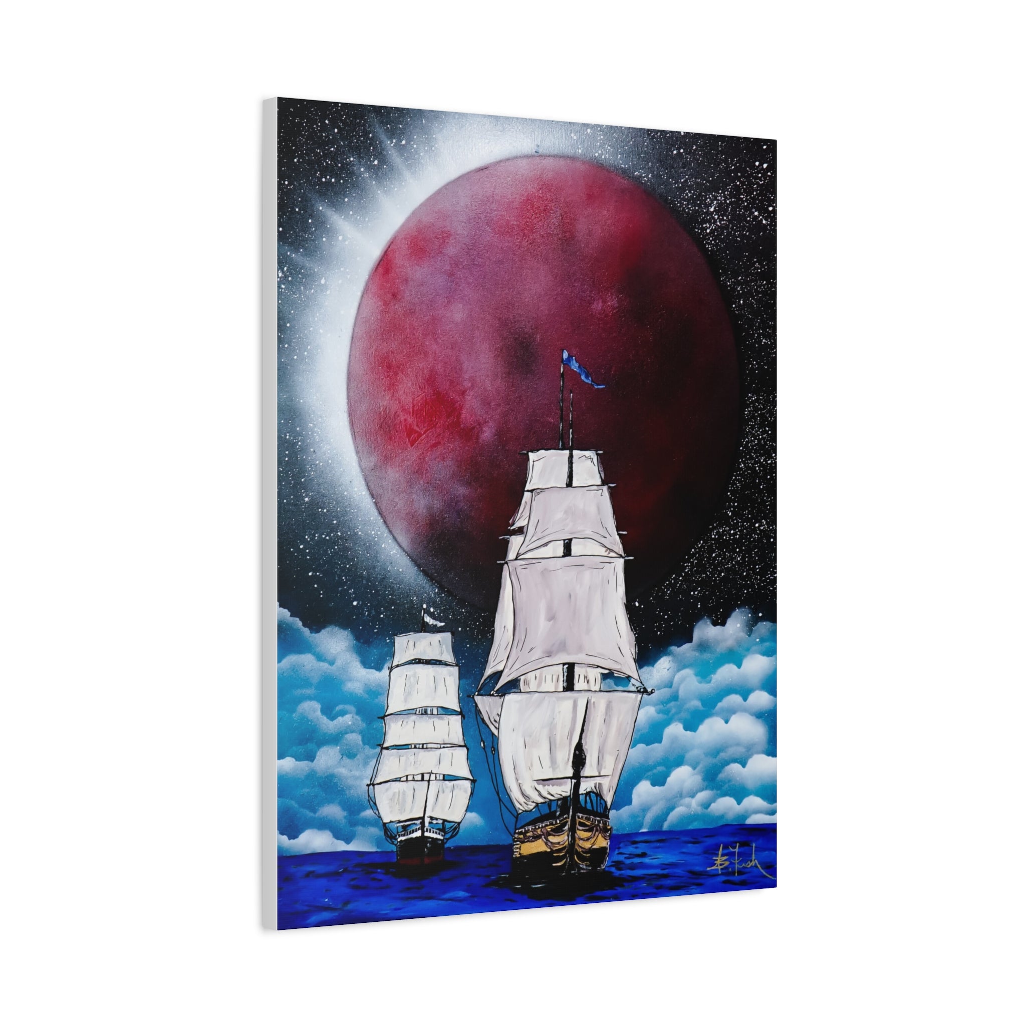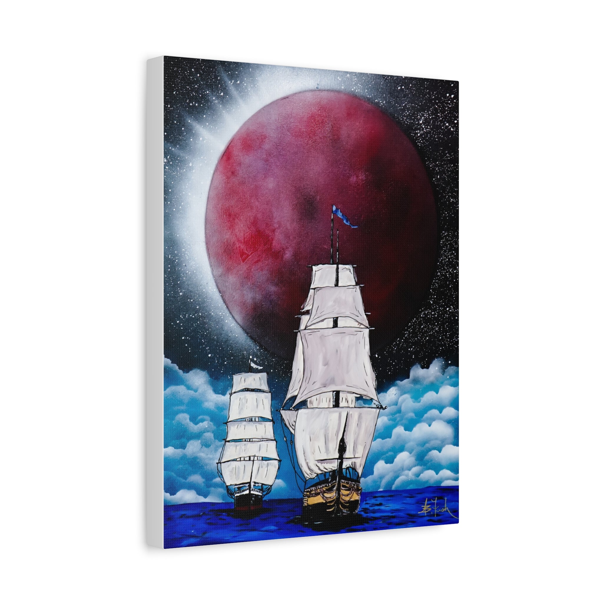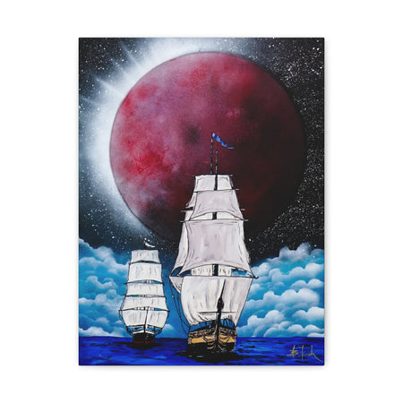 Canvas Print - Ships Sailing Blood Red Moon XIII