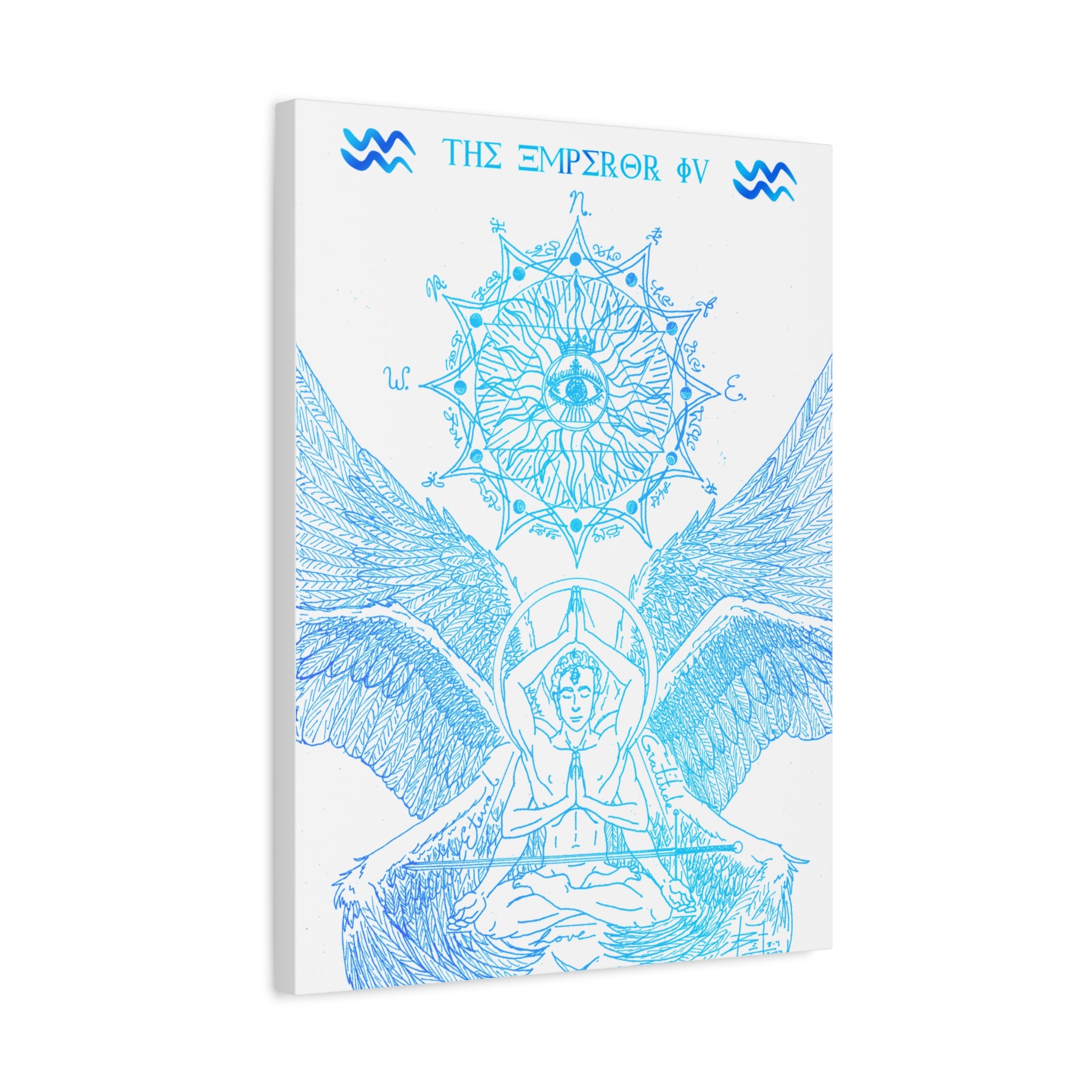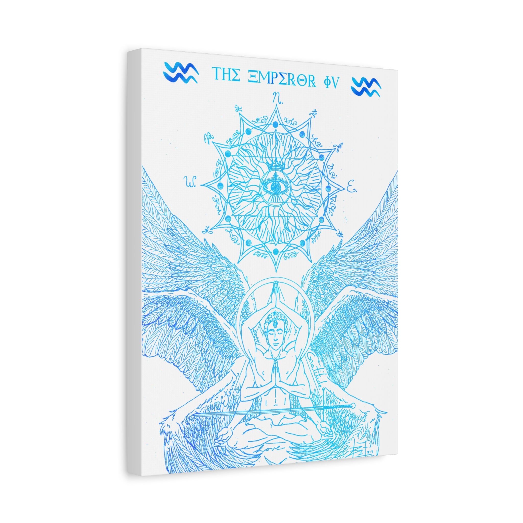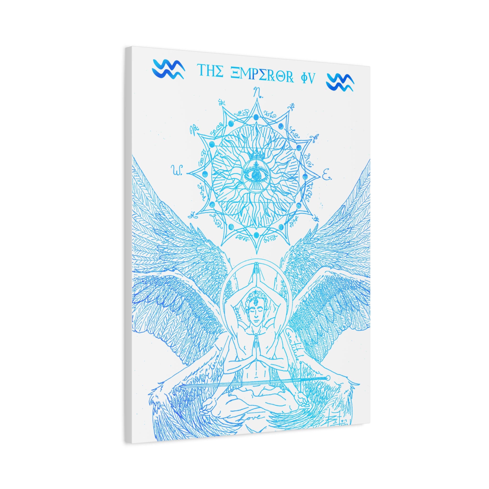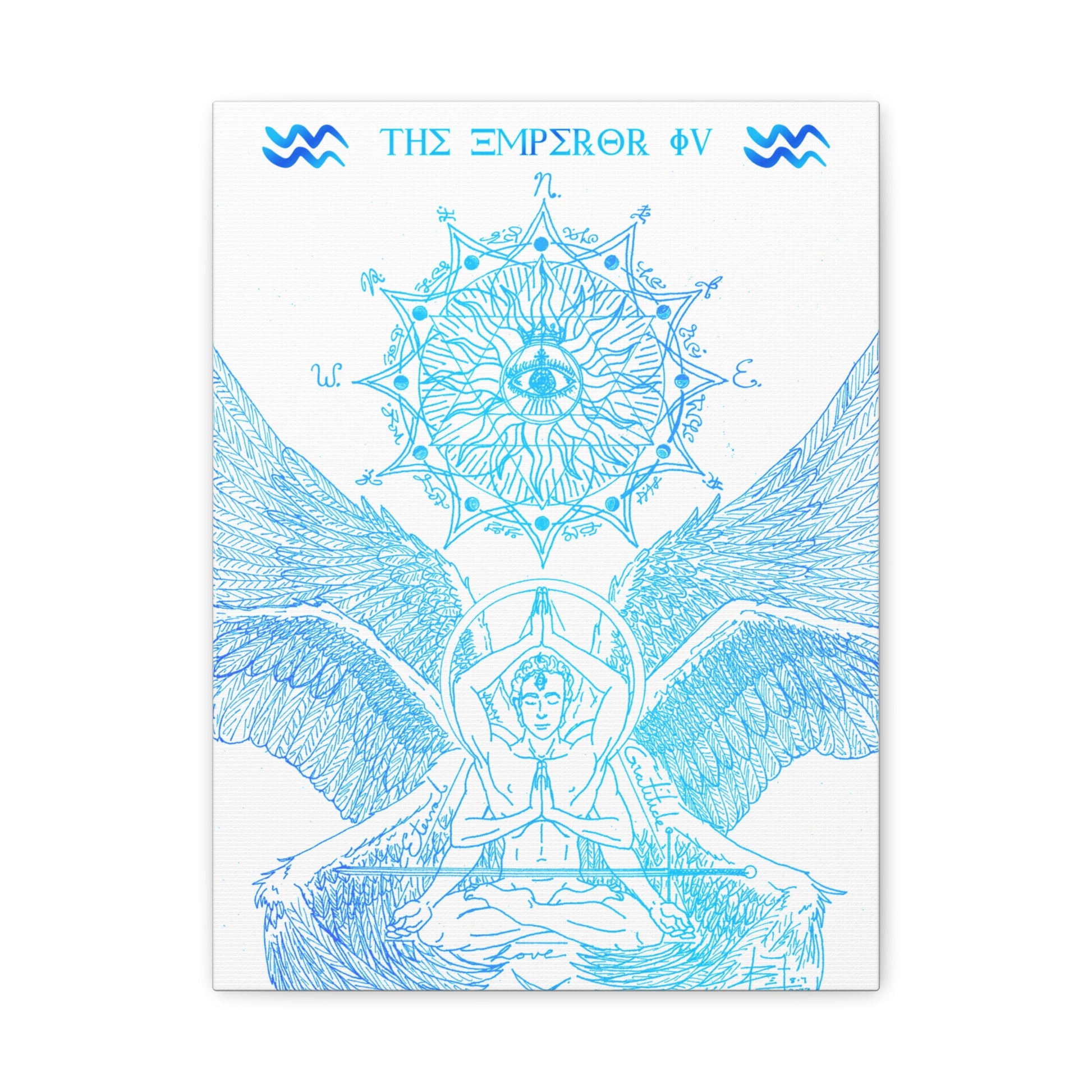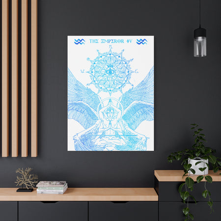 The Emperor IV XIII Angel Blue Aquarius New Age Gate canvas print exudes a mystical and spiritual vibe, perfect for those interested in astrology and spirituality. This canvas print can elevate any room's decor and is perfect for individuals who enjoy unique and intricate art pieces. Ideal for gifting on birthdays, housewarmings, or as a special treat for oneself.
