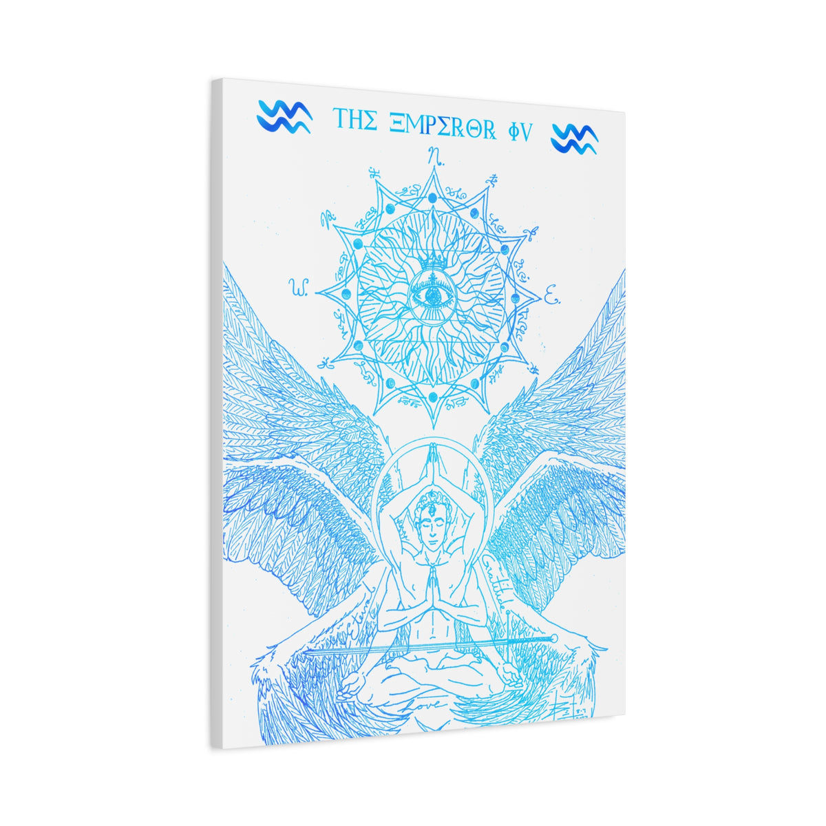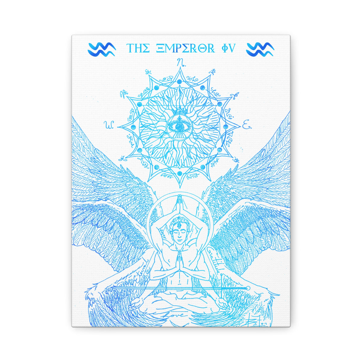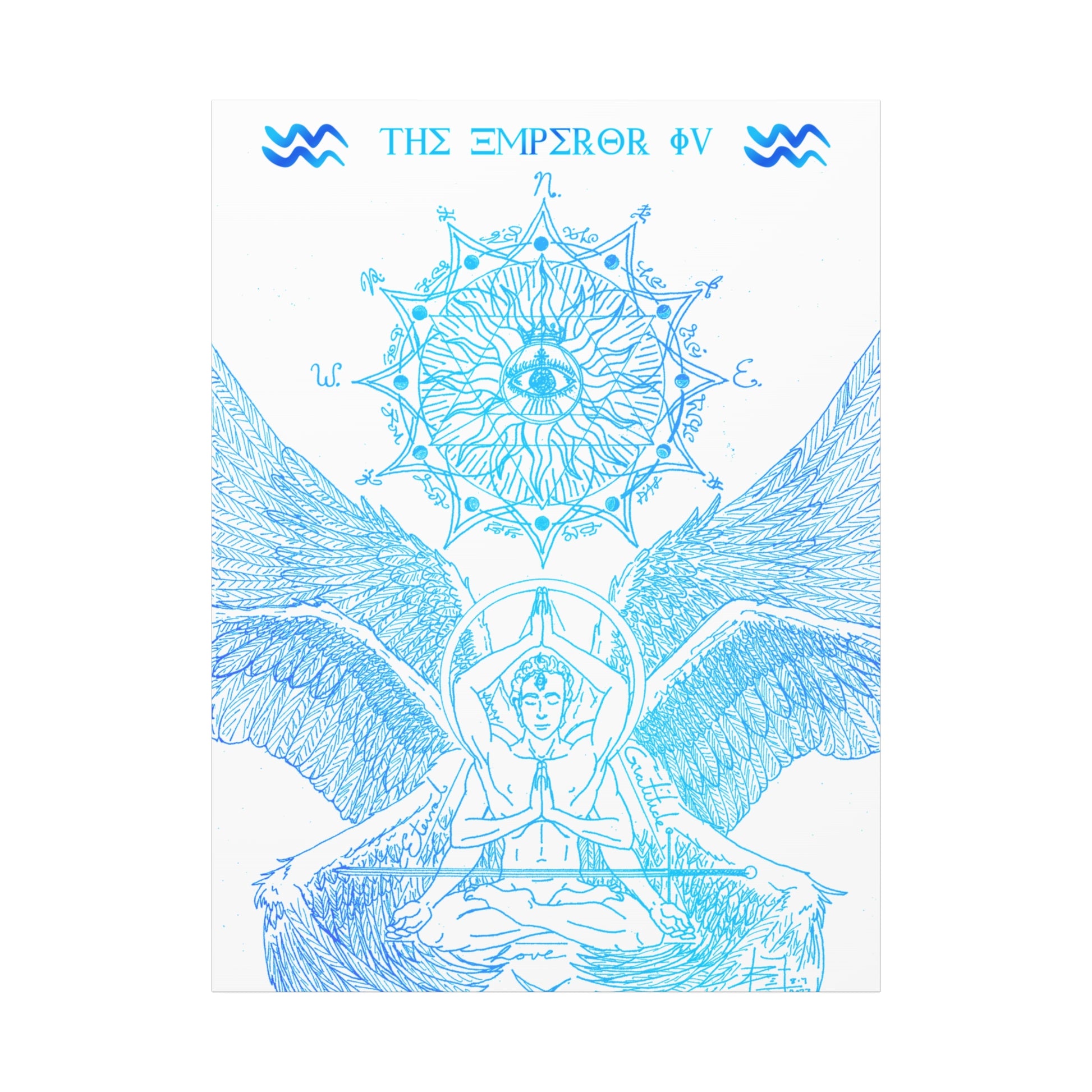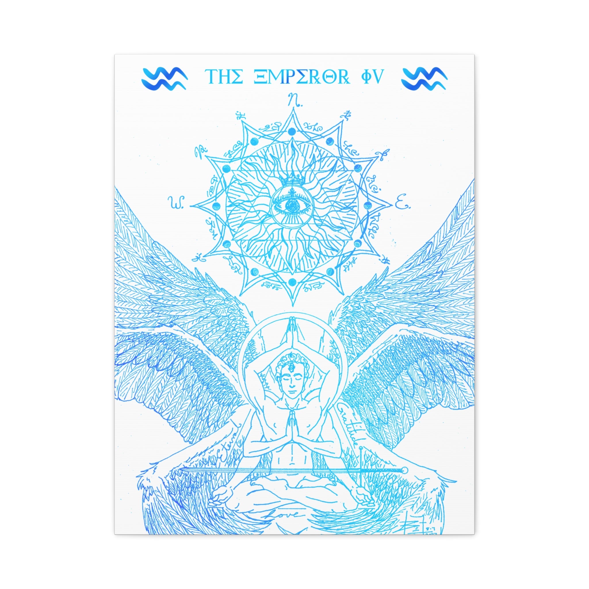 The Emperor IV XIII Angel Blue Aquarius New Age Gate canvas print exudes a mystical and spiritual vibe, perfect for those interested in astrology and spirituality. This canvas print can elevate any room's decor and is perfect for individuals who enjoy unique and intricate art pieces. Ideal for gifting on birthdays, housewarmings, or as a special treat for oneself.
