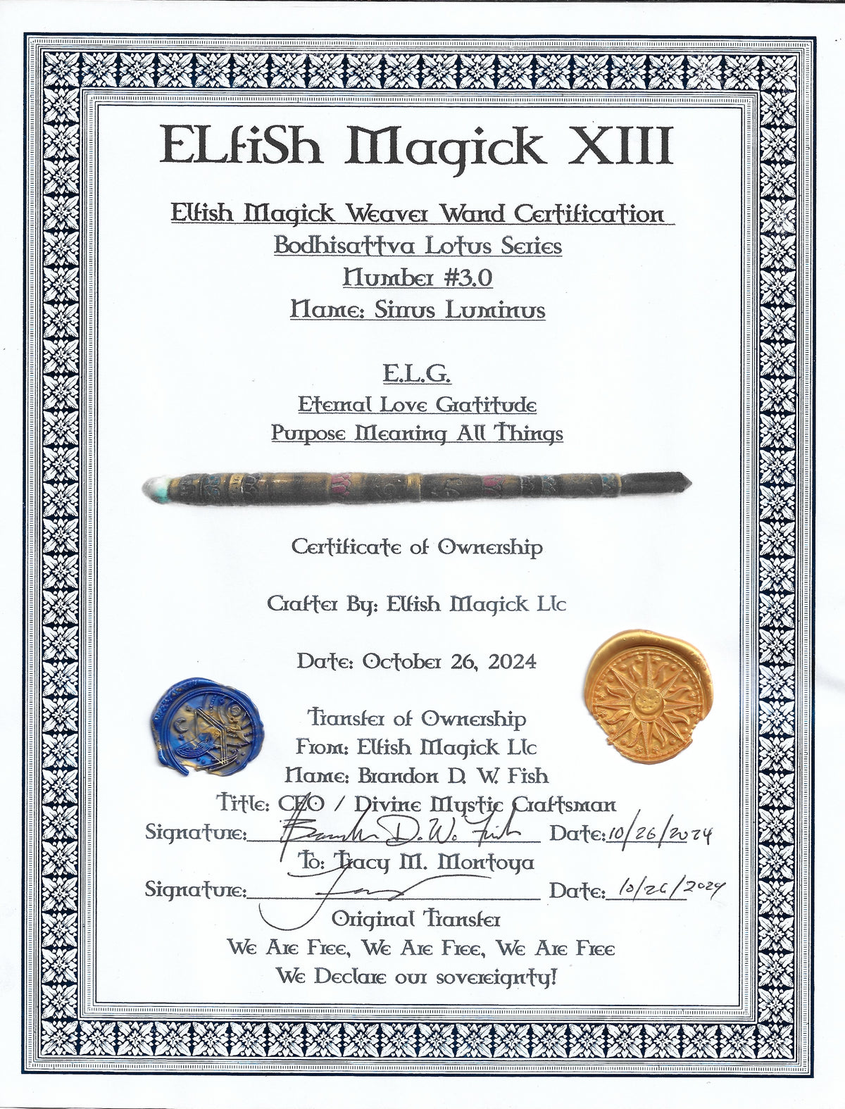 Elfish Magick Weaver Wand Certification