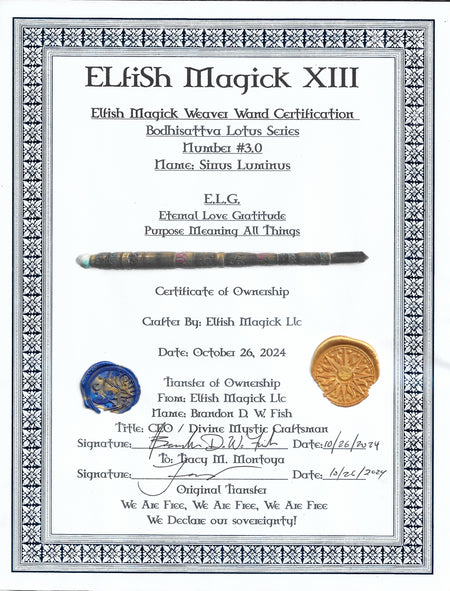 XIII Age of Aquarius, #3.0 Unique One of A Kind Magick Weavers Wand, Spiritual Tool, Metaphysical, Energetic Elfish Magick Weavers Wand Certification Bodhisattva Lotus Series Name: Sirrus Luminus